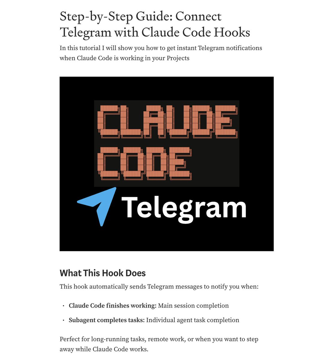 Claude Code can now send you Telegram notifications when it finishes working on your projects.