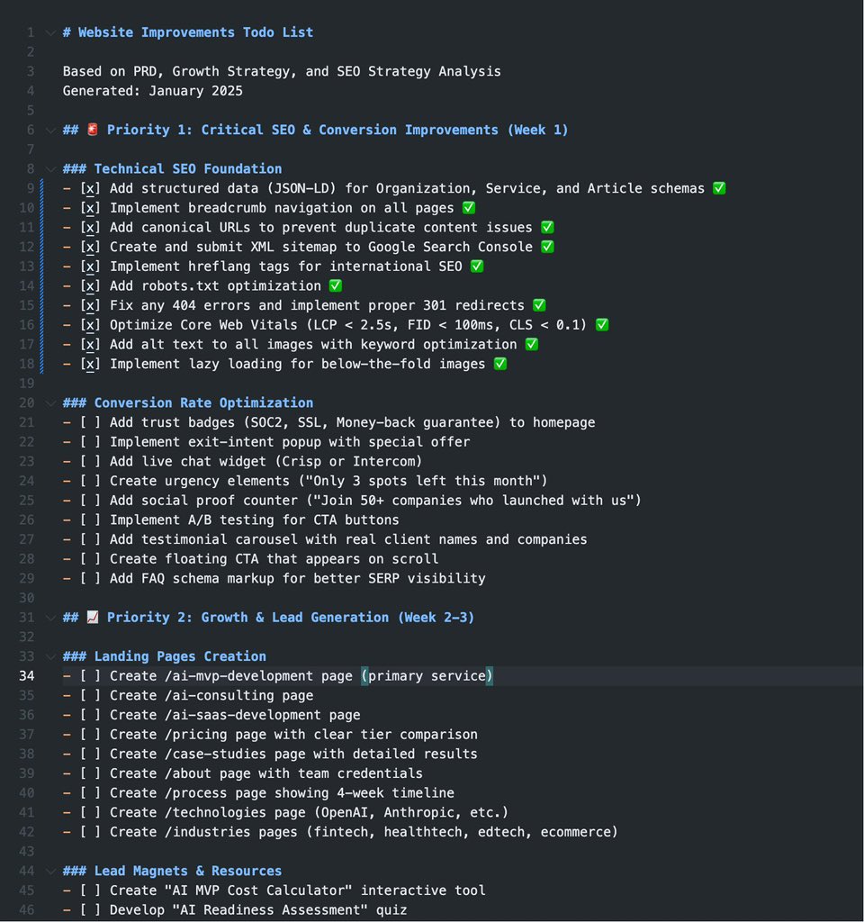 - 根據 PRD 文檔和 SEO 策略文檔,生成可以改進的 todo list 並保存