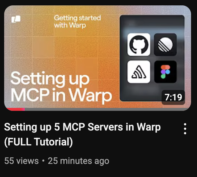 Just launched a video tutorial on how to set up 5 MCP servers in Warp: