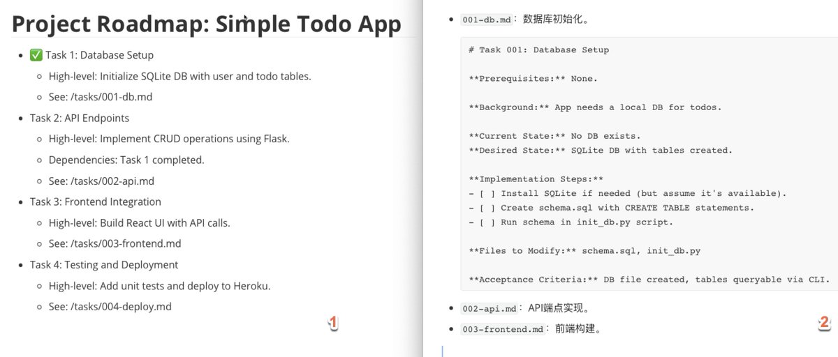 每個檔案聚焦一個具體問題,包括背景、步驟和驗收標準。這構成了 Claude Code 執行的「藍圖」——AI 會基於這些檔案一步步操作。