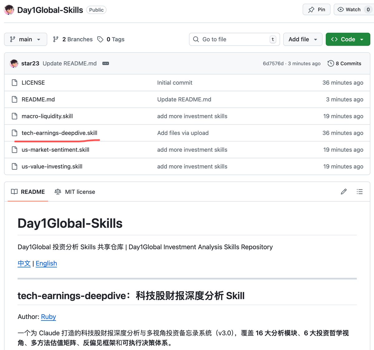 美股財報深度分析 Skill 已發布,可於 GitHub 倉庫取得。