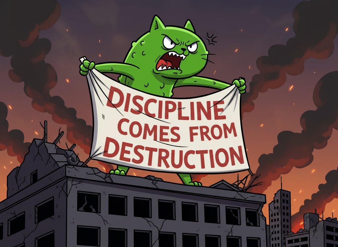 交易紀律的本質不是「練習」出來的習慣,而是經歷多次毀滅性打擊後「被迫」重塑的心理韌性。真正的紀律來自破壞(destruction),而非決心(determination)。