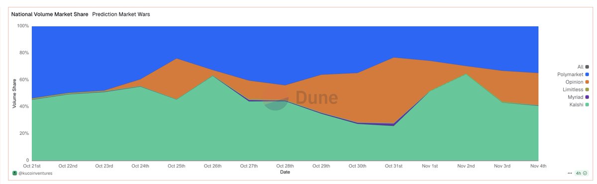 - 在預測市場中,熱度和份額僅次於 Polymarket 和 Kalshi