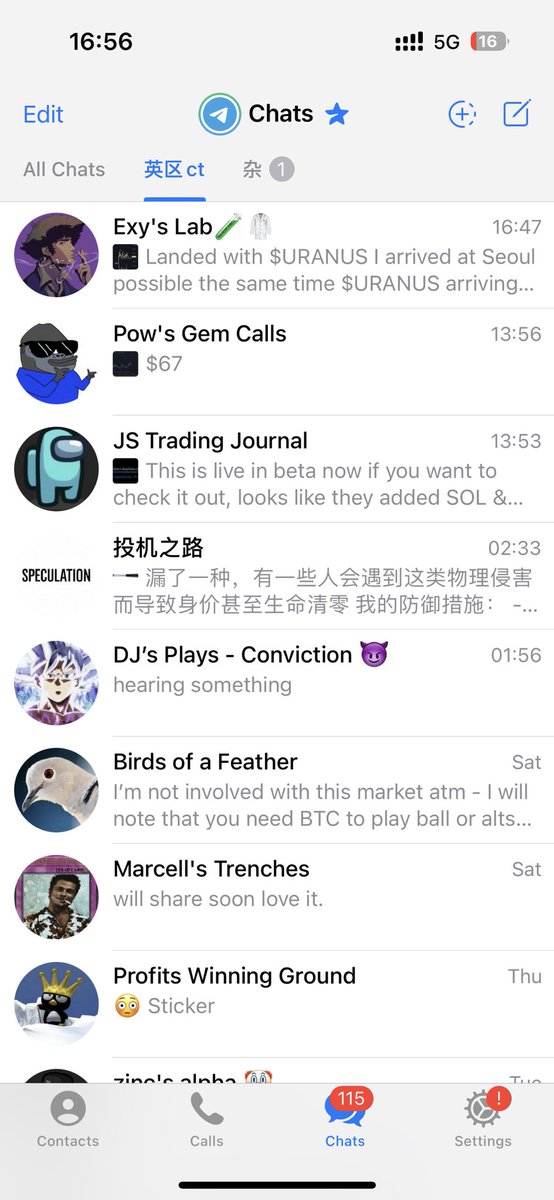 建議在 Telegram 上單獨設置一個 folder,專門追蹤英文區 CT(Crypto Twitter)和中文區較為頂級的交易者。
