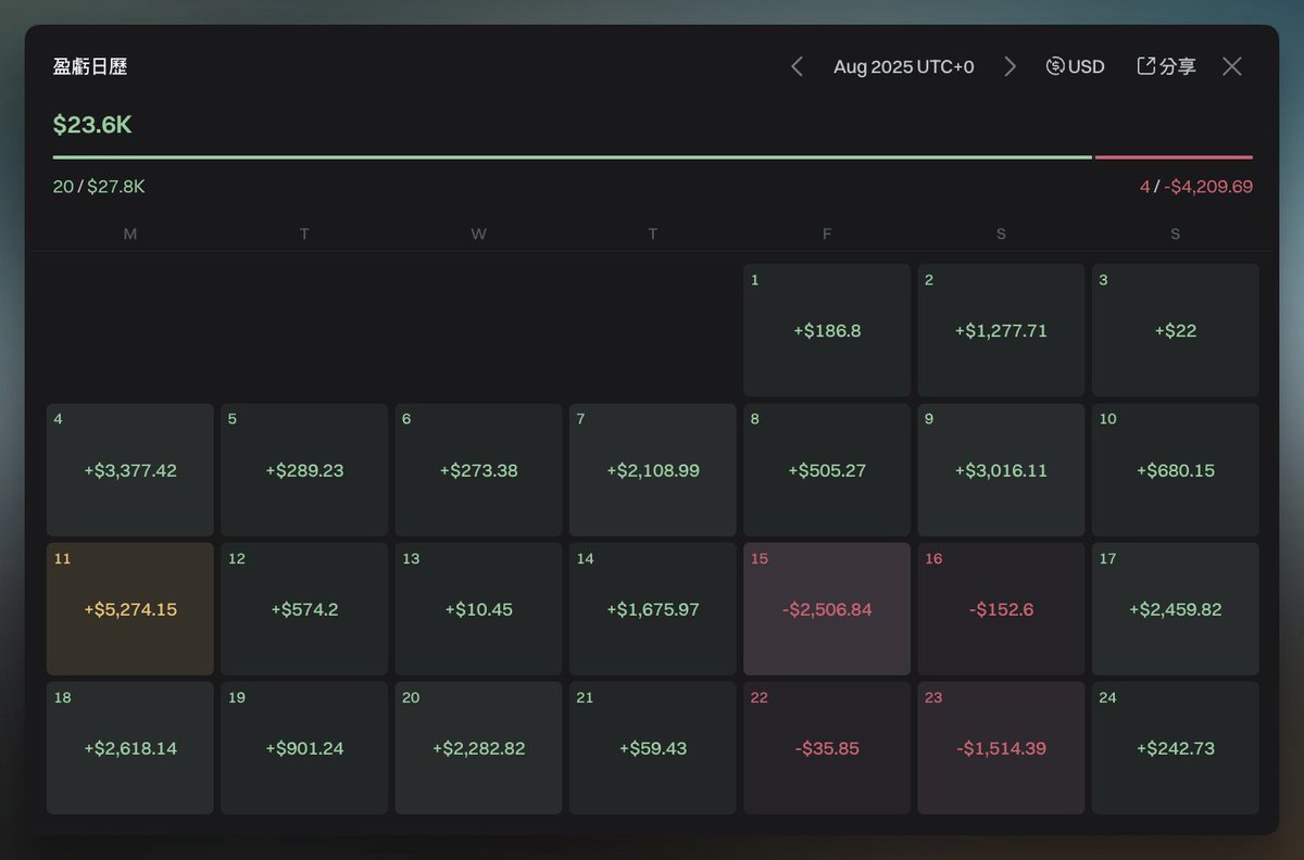 回顧來看,07/22~08/23 我的總收益是 143k 刀,由於台美匯率助攻,單月收益剛好突破 500 萬新台幣,這已經是我開始玩鏈上的 9 個月裡,交易生涯第三出色的表現了,而主要我想說的是我在 @BNBCHAIN 應該算是還不錯的玩家了,我也只有賺這樣,也是順便幫大家袪魅一下,我實力差不多就這樣而已,千萬不要神化我、萬萬不要有什麼幻想,現在發現我很菜的可以取關我了 😂