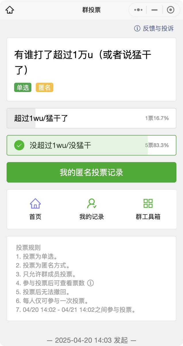 真的幹進去的人都不多,有個群友發給我個在自己小群裡的匿名投票統計,10 個人裡有一半的人只幹了 1wu 以下,還是在他按頭喊了三次的情況下,沒人猛幹 $SKYAI 的預售。