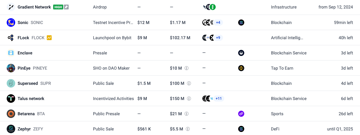 除了交易所 IEO(如 OKX、Binance、Bitget、Bybit)之外,還有鏈上一級市場公售機會可以參與。這些公售機會通常勝率高,且可以投入較大倉位。