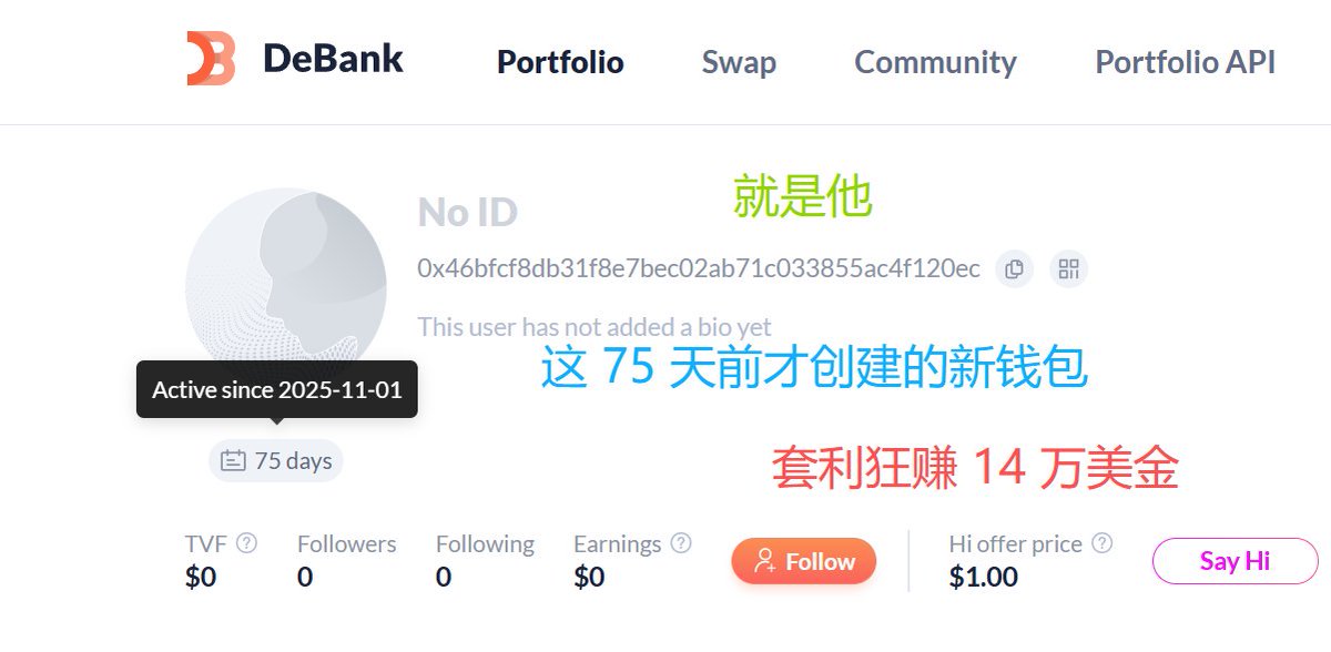 - 帳號設置: 創建一個 75 天前的新錢包,專門用於套利,沒有其他 DeFi 交互紀錄。