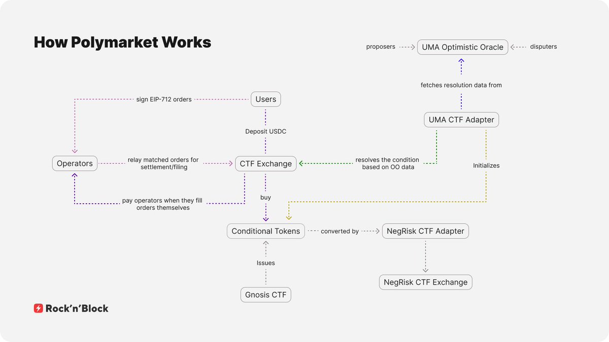 Polymarket 的智能合約是平台的支柱,處理訂單執行、資產管理和交易邏輯。