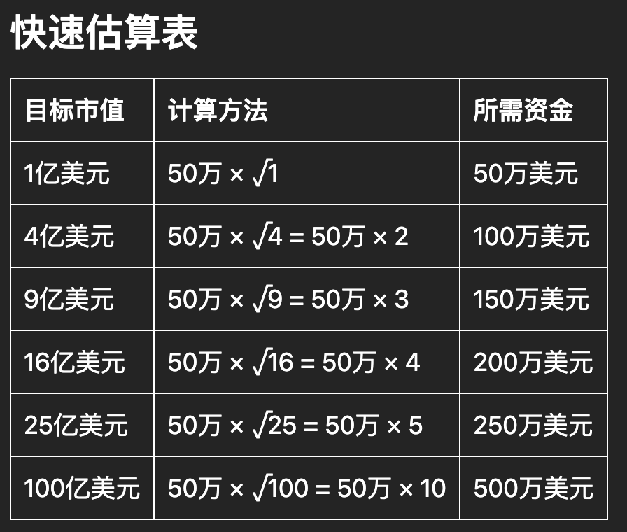 雖然是理想化的假設,但大致能看出拉盤到某個數量級所需的資金量。