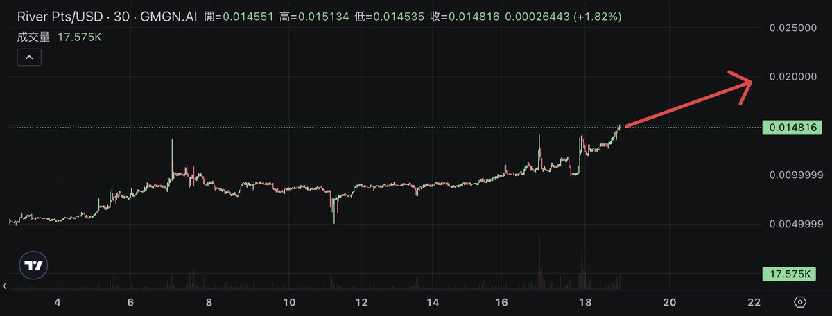 我認為幾週內 River Pts 將從 0.015 漲到 0.02 。