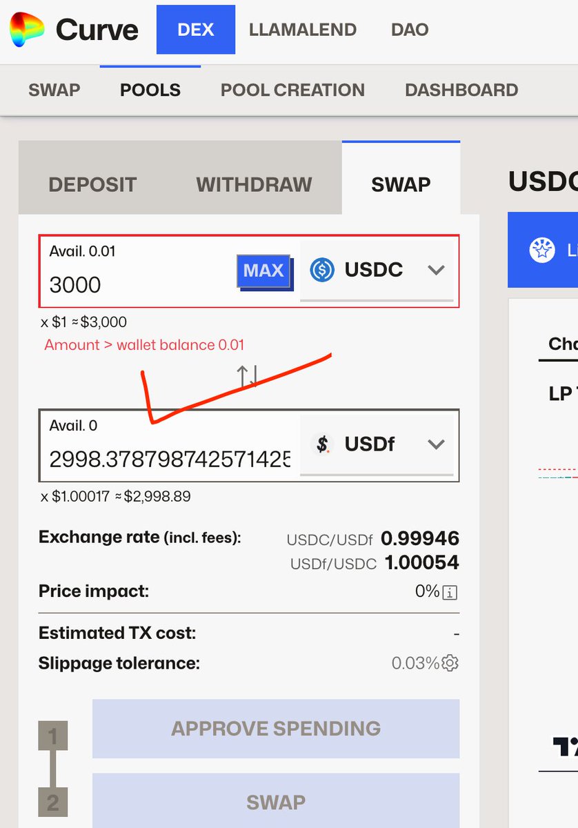 去 Curve 用 USDC 兌換 USDF