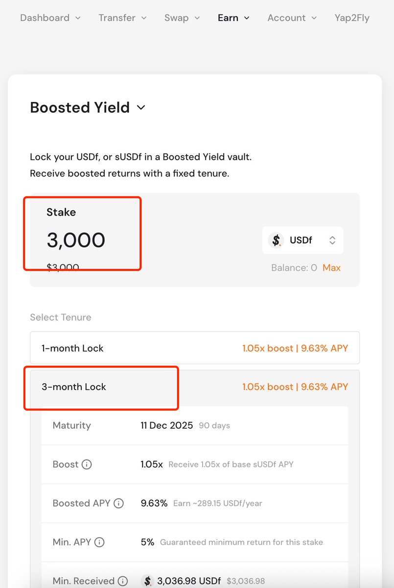 - 存入 USDF,選擇 3 個月期限