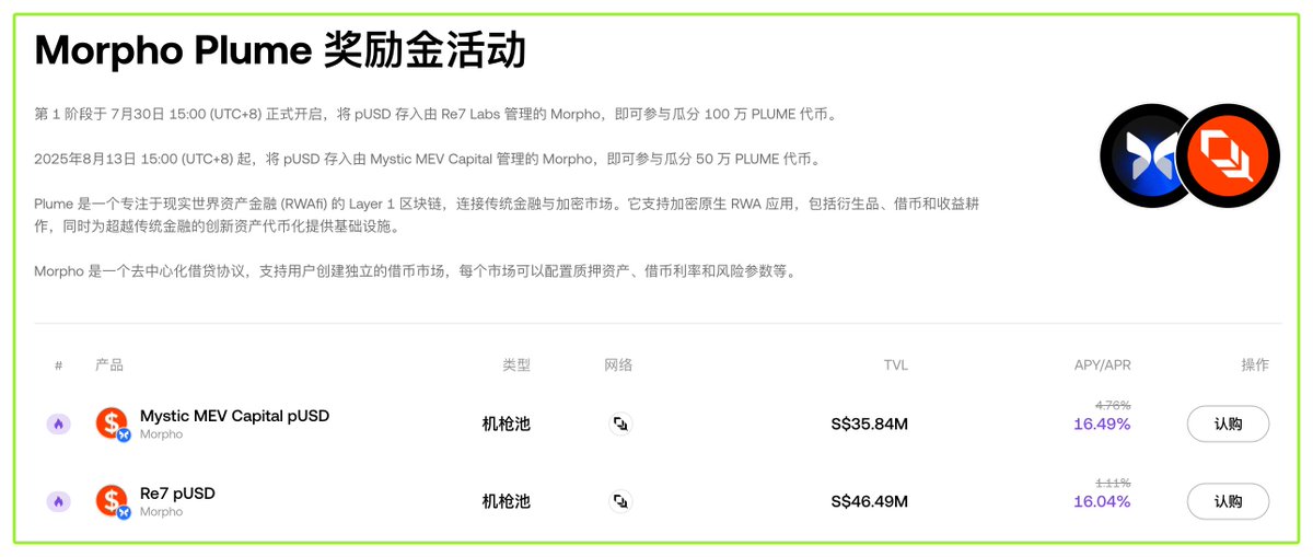 3️⃣ Plume 在 OKX 的激勵活動:Plume 在 OKX 的激勵活動又上新了,目前 APR/Y 都在 16% 以上,其中存入資產的 pUSD 建議使用 USDC 鑄造,沒有滑點。