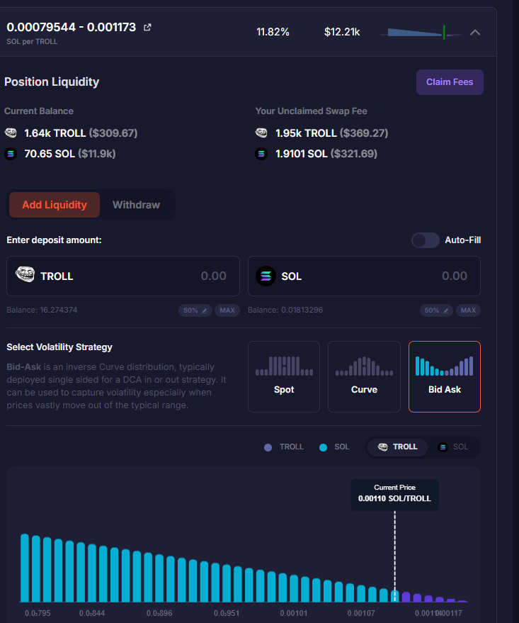 $TROLL-$SOL DLMM 流動性池位策略與收益分析