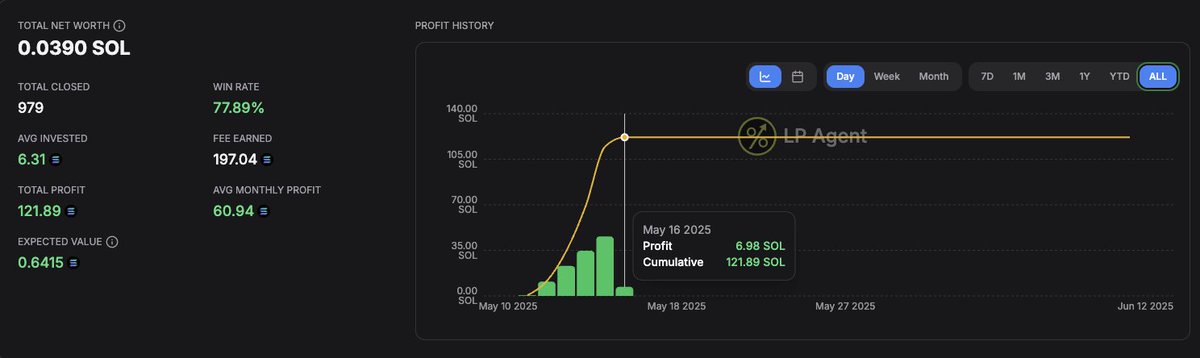 使用 @MeteoraAG 在 6 天內獲得 +121.89 SOL 收益。