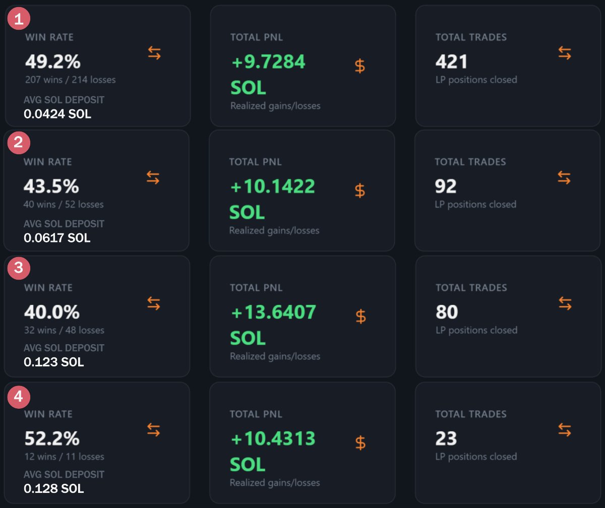 小資金高槓桿效應:在低 TVL 池子中,即使只投入 0.3 SOL,也能獲得池子較高比例的份額。當高滑點交易發生時,費用分配按比例計算,這讓小資金也能捕獲可觀的絕對收益。這種策略特別適合資金量小但願意承擔風險、密切監控市場的交易者。