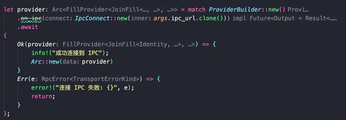 首先創建 provider 連接節點,這裡我是用的是 IPC (Geth 的本地通信機制),一般不做數據分析可以直接使用 http/ws 的 rpc,公共或者付費都可以。