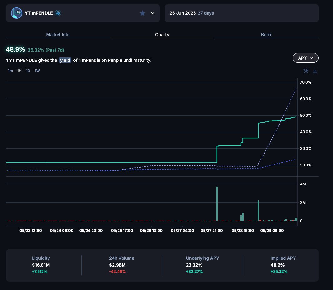- 此策略利用 Pendle 的 YT 機制進行收益放大