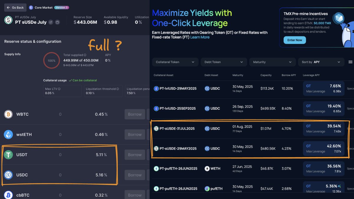 最近 Pendle x AAVE x Ethena 成長炸裂,巨鯨們狂做 PT loop。但如果行情繼續看漲,可能出現槓桿玩家被榨乾的風險循環。相比之下,TermMax 提供固定利率策略,可避免 squeeze 風險。