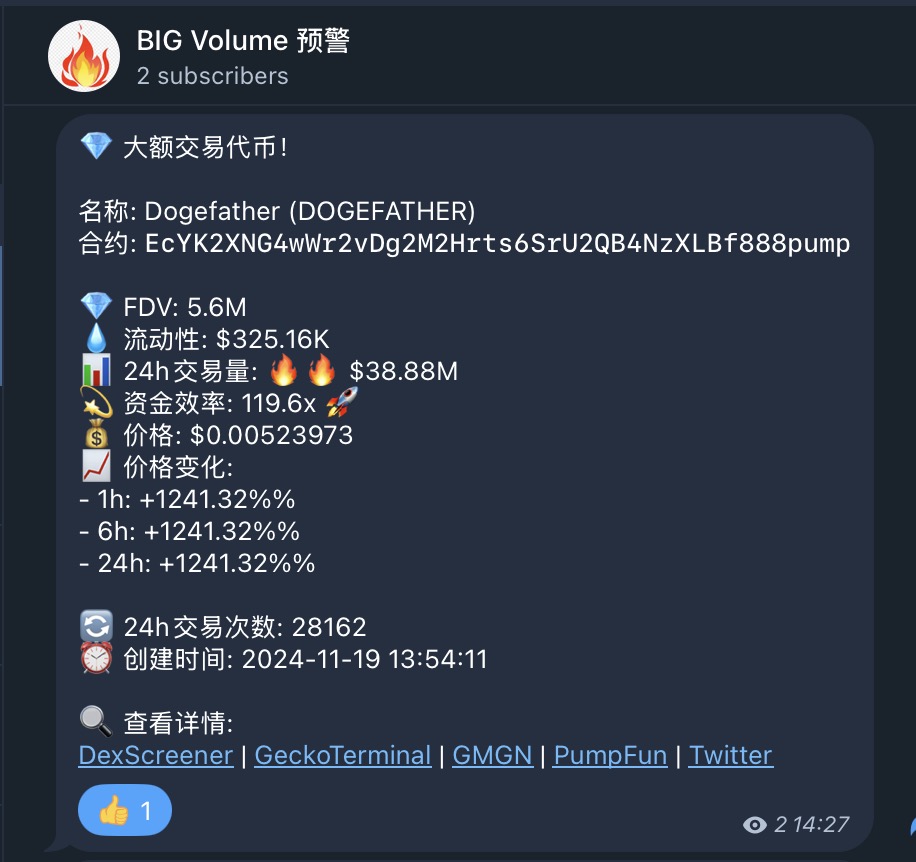 比如今天這個 DOGEFATHER,資金效率接近 120,同時疊加超級明顯的長上下影線。