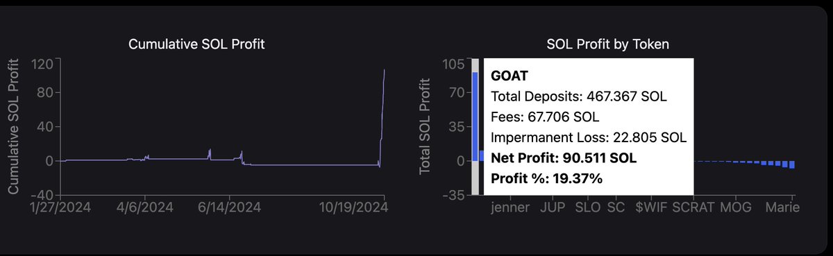 這個交易對可能貢獻了絕大多數盈利,平台統計有 90 SOL,個人感覺可能有點虛標。