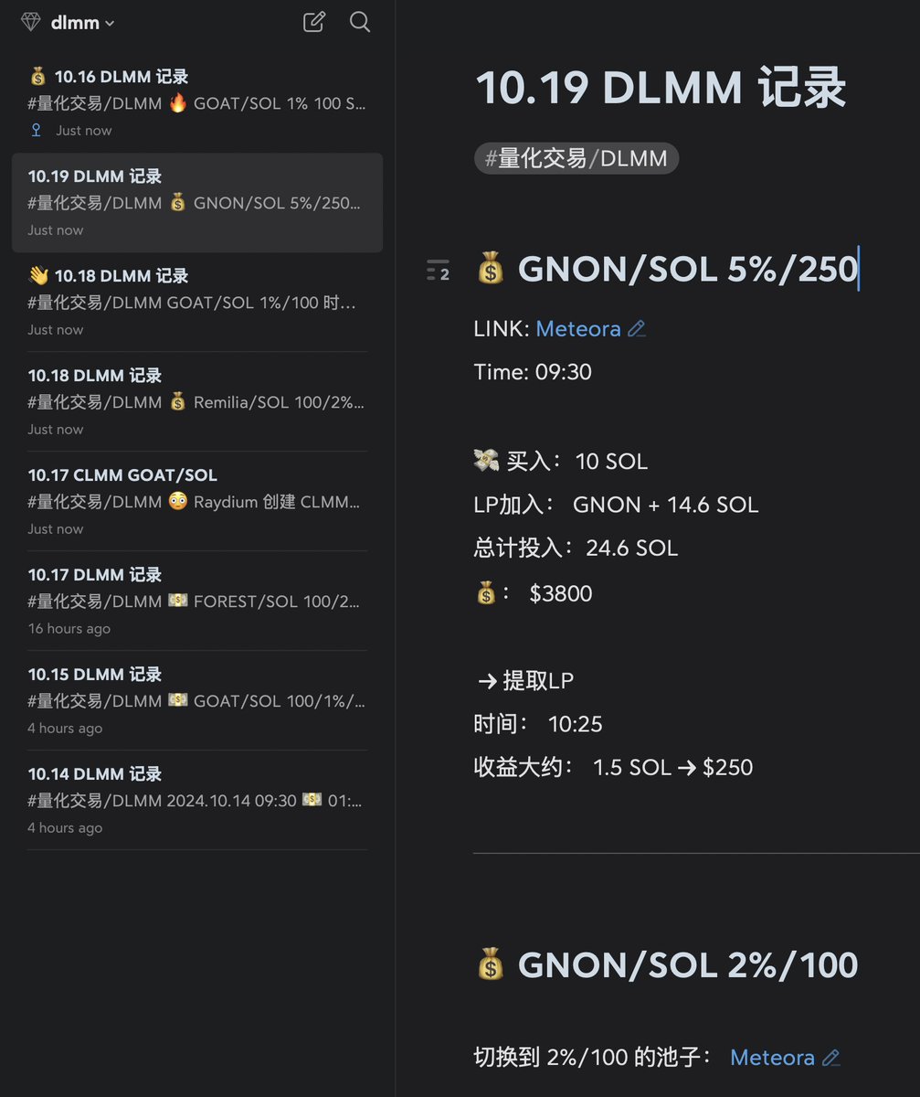 最近一週高強度搞了下 Solana 上 Meteora 的 DLMM(集中流動性做市)。