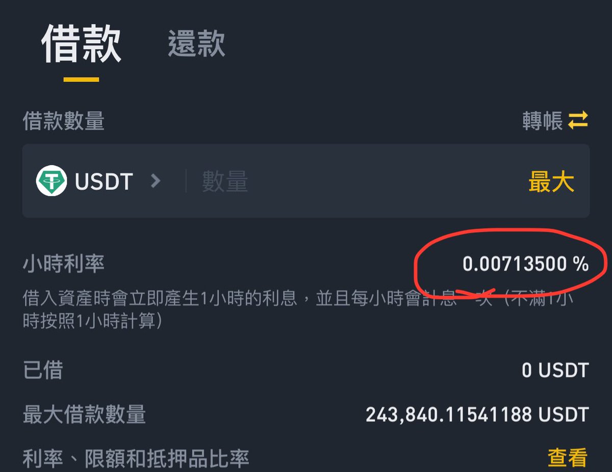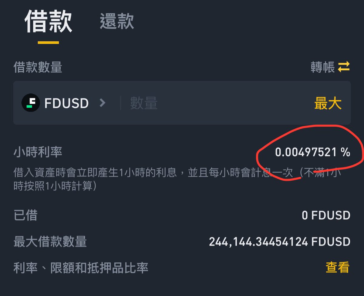 幣安的穩定幣利息通常都不會一樣,通常受挖礦影響,可以比較看看要借哪個比較划算(利息差了 30%)。
