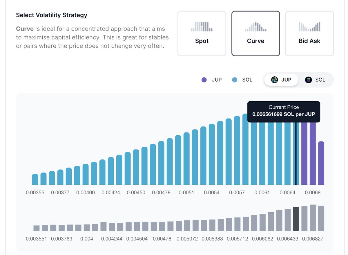 - 池子 B:JUP-SOL,1% 費率,Bin Step 100,Bid-Ask 曲線