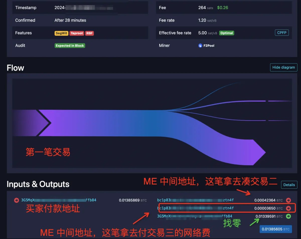 前兩筆採用較低費率(1.2 sats/vB),可以保證:
