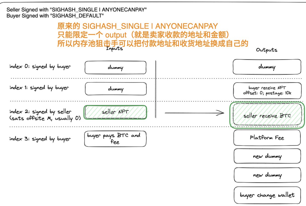 - 賣家簽名時只限定了要賣的東西(input 裡自己的 ordinal)