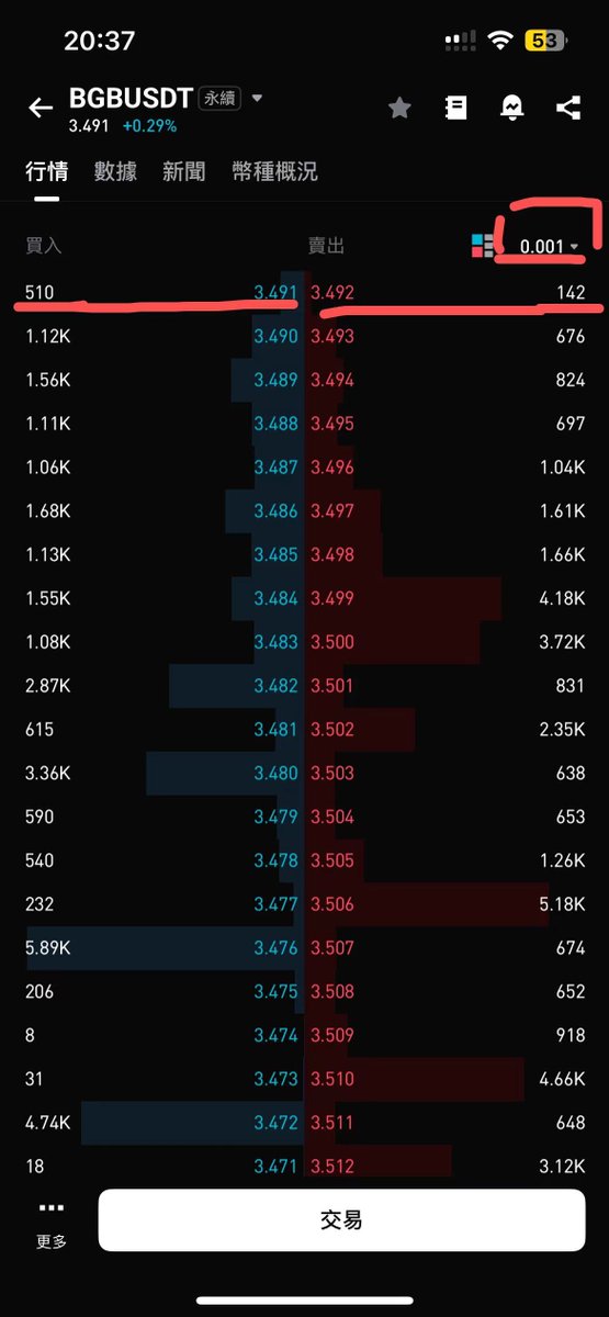 - 盤口深度:約 1000 多美元