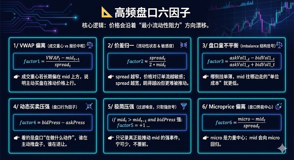 factor6_t = (micro_t - mid_t) / spread_t直覺至關重要: