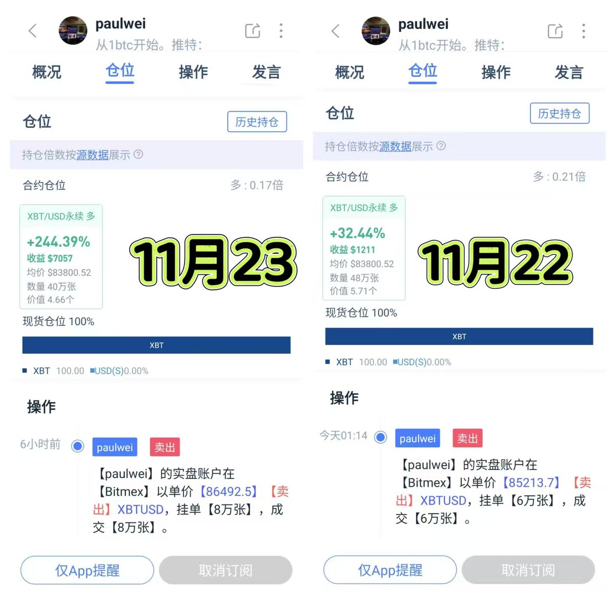 延續以往思路,可以看出魏神又止盈了 8 萬 U,讓合約持倉倍數從前兩天進一步降到 0.17 倍。