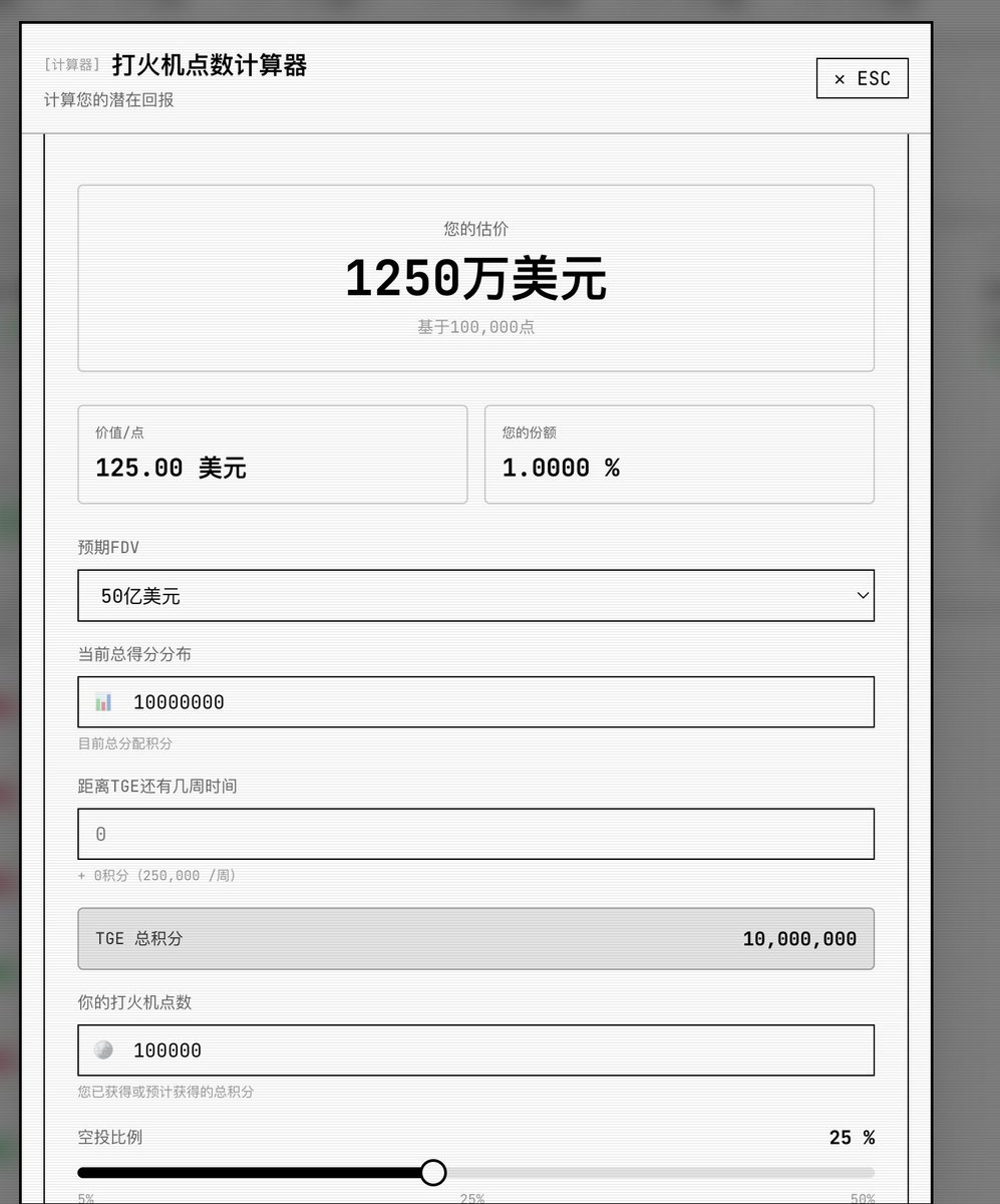 這個就不用多說了,決定預期的 FDV 和自己的 points 之後就能直接算出自己的空投價值