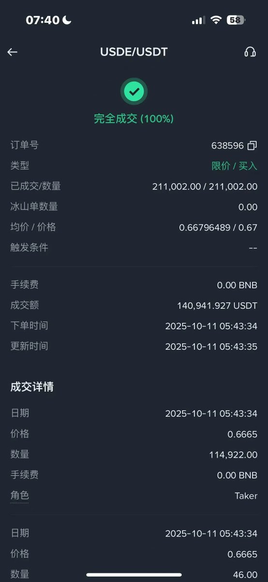 1️⃣ 幣安 USDe 現貨價格暴跌