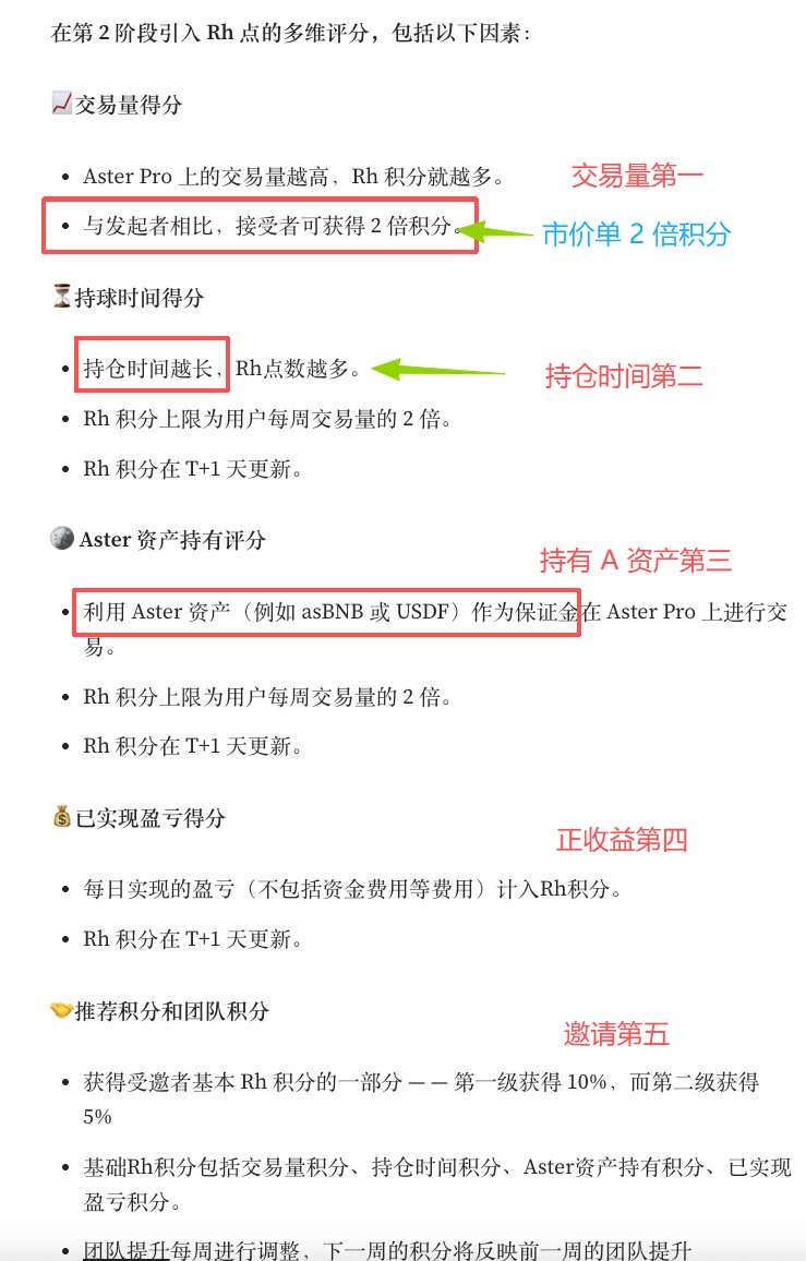 - 市價單優先:市價單積分是限價單的 2 倍 → Aster 用市價單