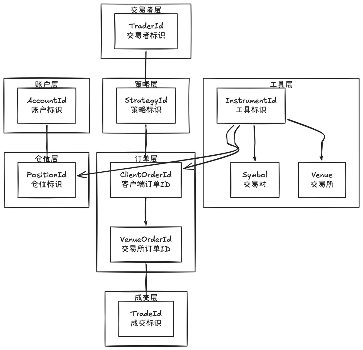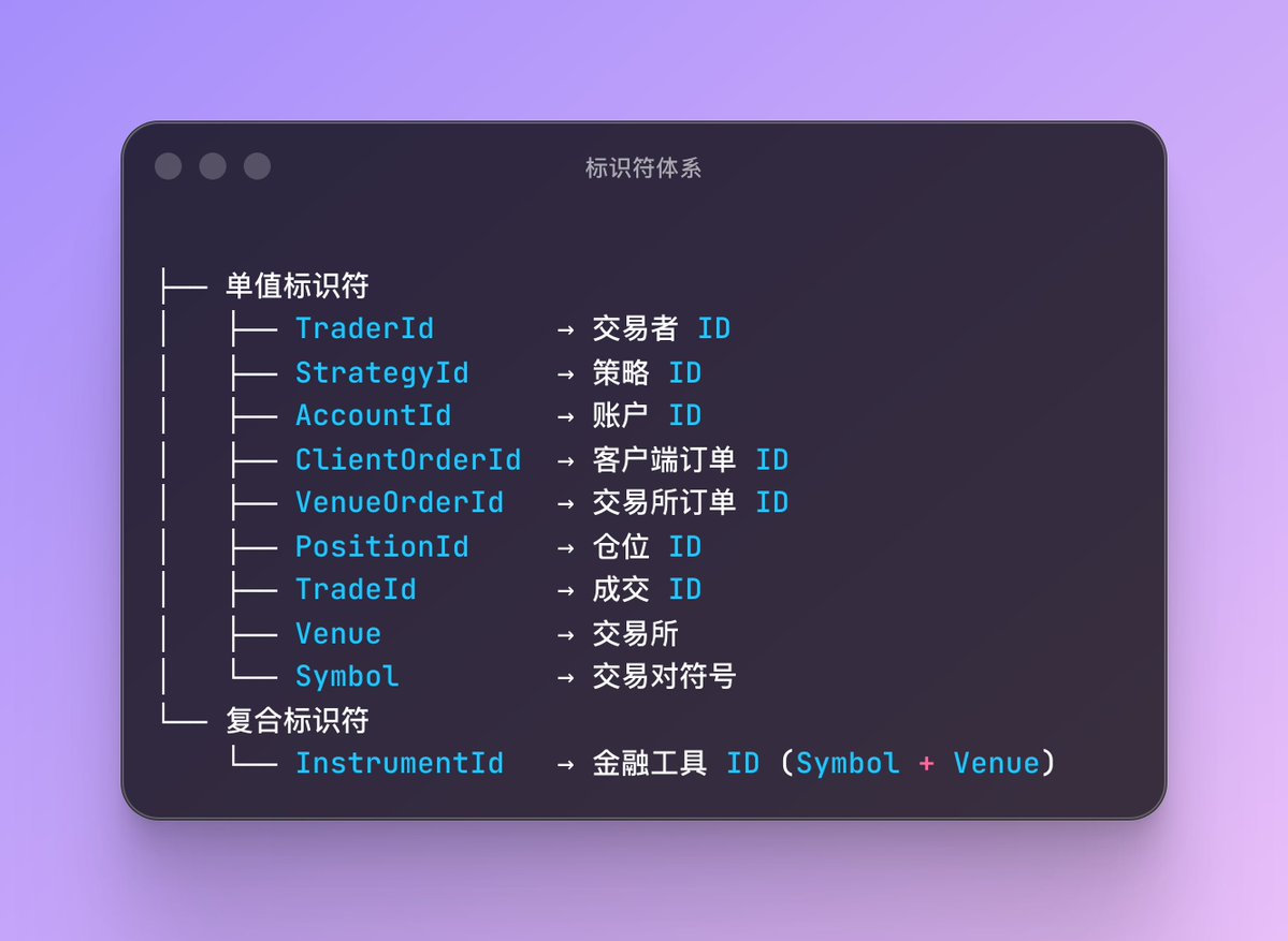 在量化交易中需要為實體設計標識符類型。使用 Ustr(駐留字符串)而非 String,比較效率 O(1) 指針比較。
