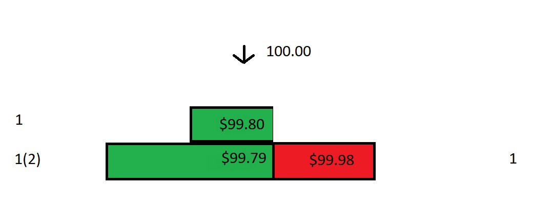 如果市價買單以 99.80 成交:
