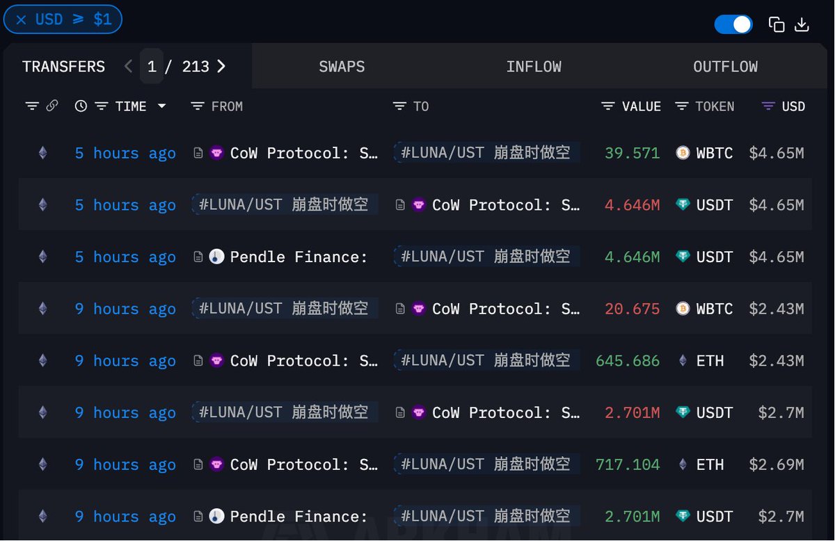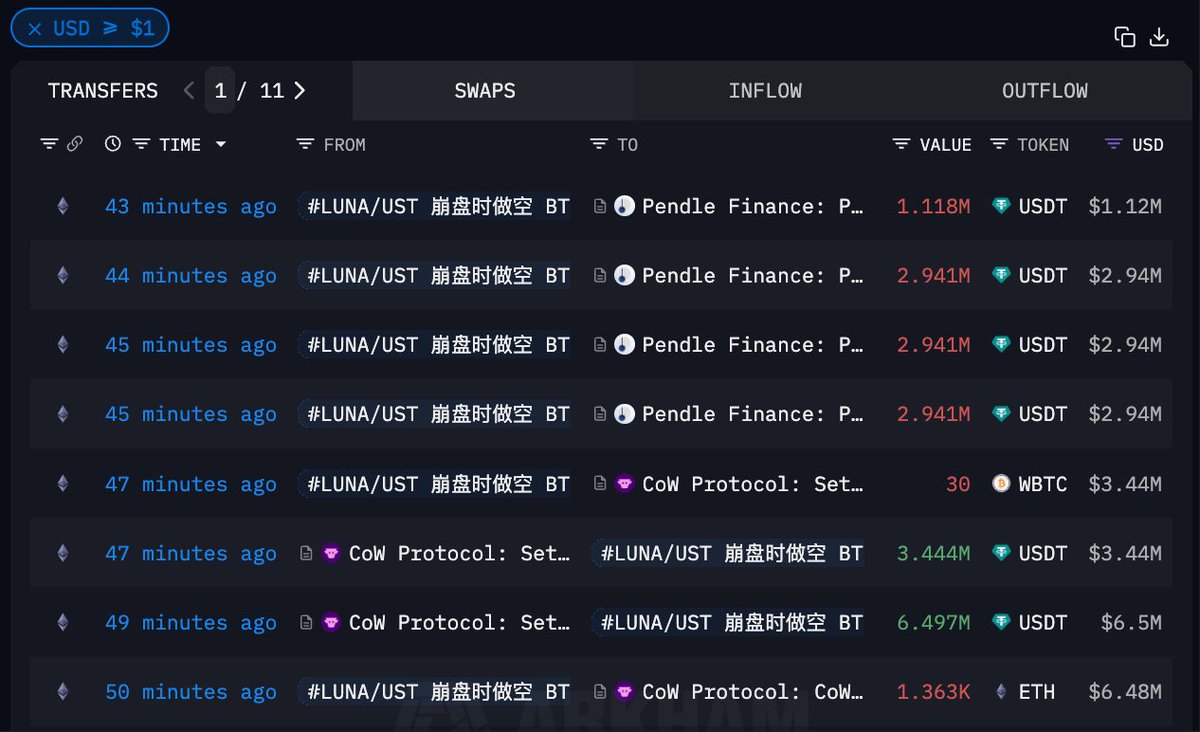 - 透過 $BTC 和 WBTC 抄底賺 729.3 萬美金