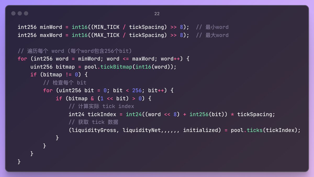 在進行 V3 pool 的代幣交換計算時,需要考慮池子的 tick 資料以及當前 tick 的流動性狀態。過去參照大佬 Zacholme7/PoolSync 使用從歷史區塊同步的方法來獲取池子的 ticks 狀態,但實際使用中只需要當前池子的 ticks 資料,並不需要知道歷史的變化。查閱文檔和資料後發現有更好的方法。