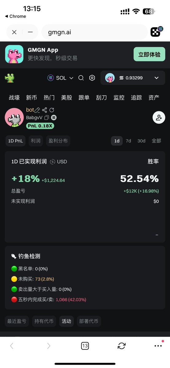 像這個地址雖然每日盈利肯定不是圖上這樣,但是我大概計算了一下,日賺 2-3 SOL 也不是問題。我自己的 bot 也差不多是這樣。