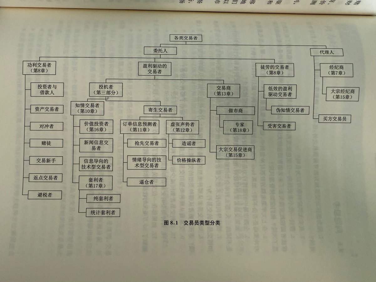 《交易與交易所》一書中的圖 8.1 非常具有啟發性。該圖展示了市場內所有交易者的類型,並在每一個類型交易者的專題章節中詳細介紹了: