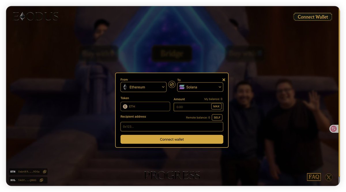 Solana 上的項目方 @EthereumExodus,做了一個跨鏈工具,可以把 ETH 的 token 跨到 Solana 做交易,目的是為了讓以太坊的用戶可以流動到 Solana 上去。