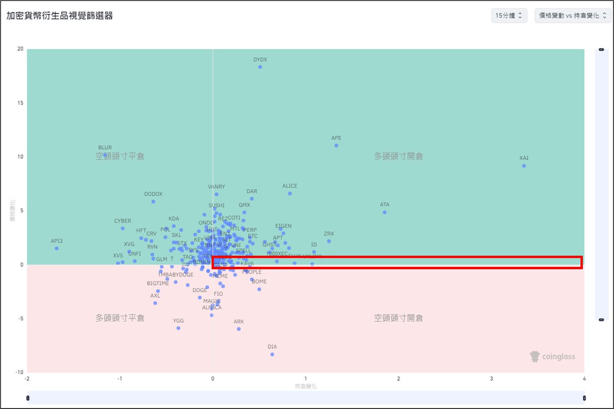 - 此區域的幣種持倉堆疊但是價格未跟上