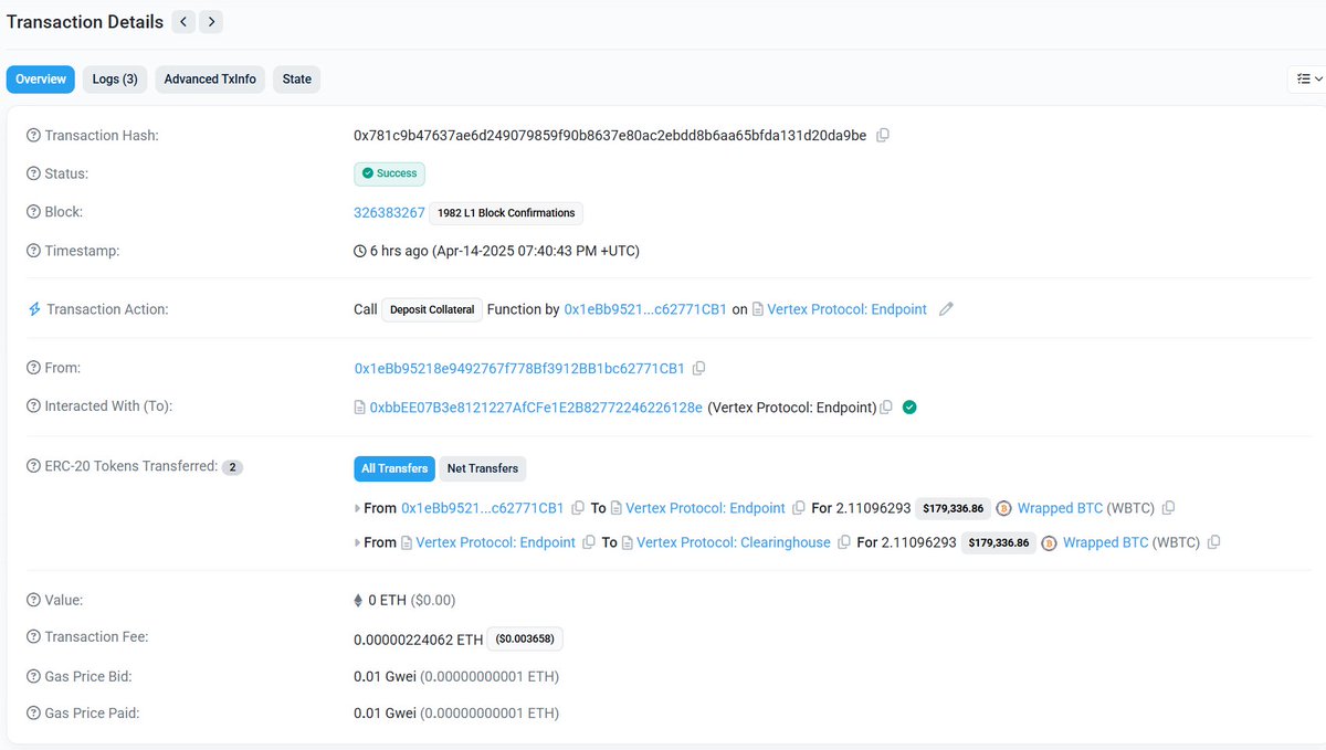 在 ARB 鏈上利用聚合器和 VRTX 交易所之間的價差進行對沖套利操作。