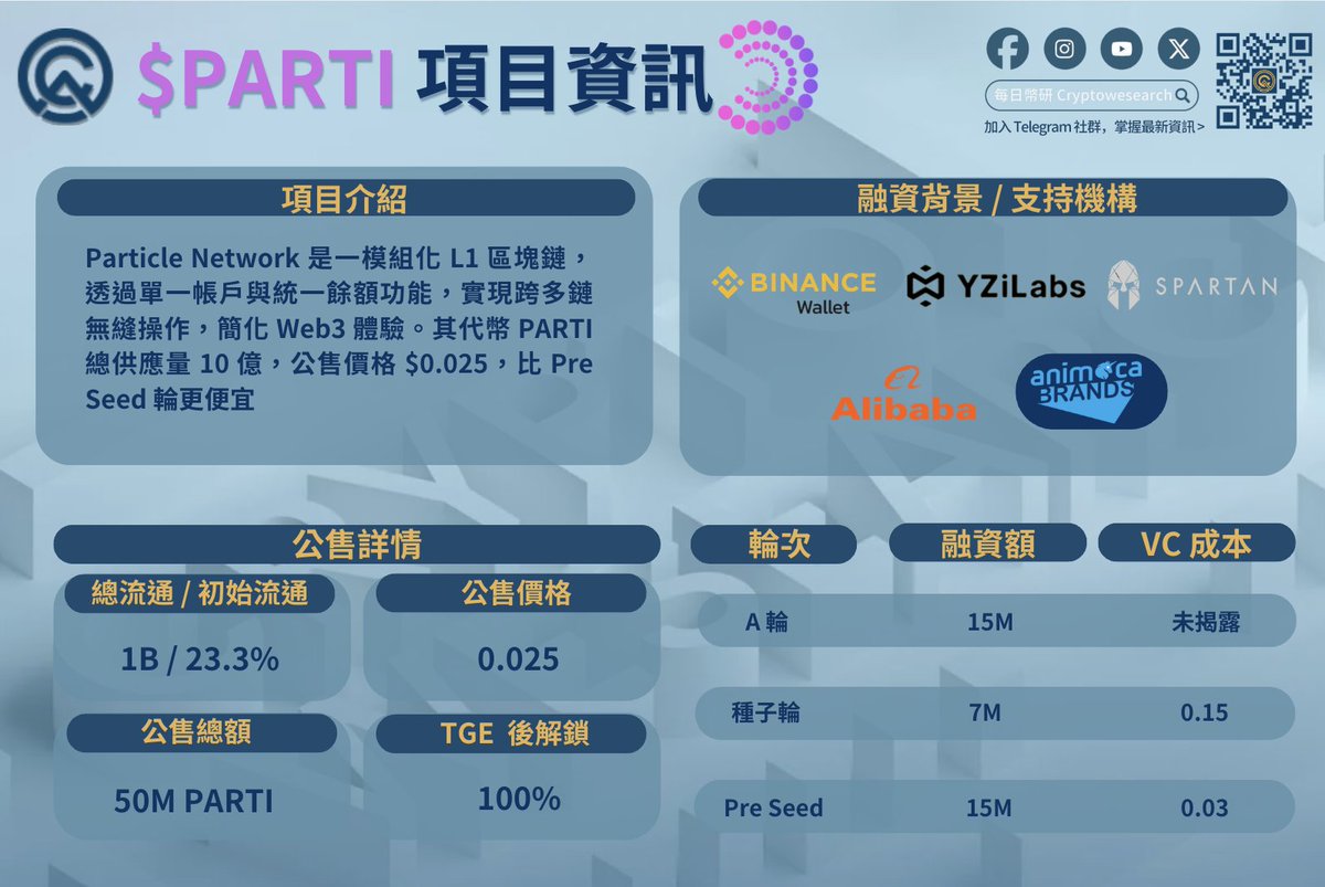 - @BinanceWallet 於 3 月 25 日 18:00 - 19:00(UTC +8)上線 @ParticleNtwrk $PARTI 獨家 TGE 🔥🔥