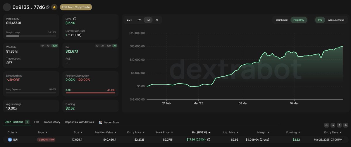 Hyperliquid複製交易跟單策略SUI合約Dextrabot