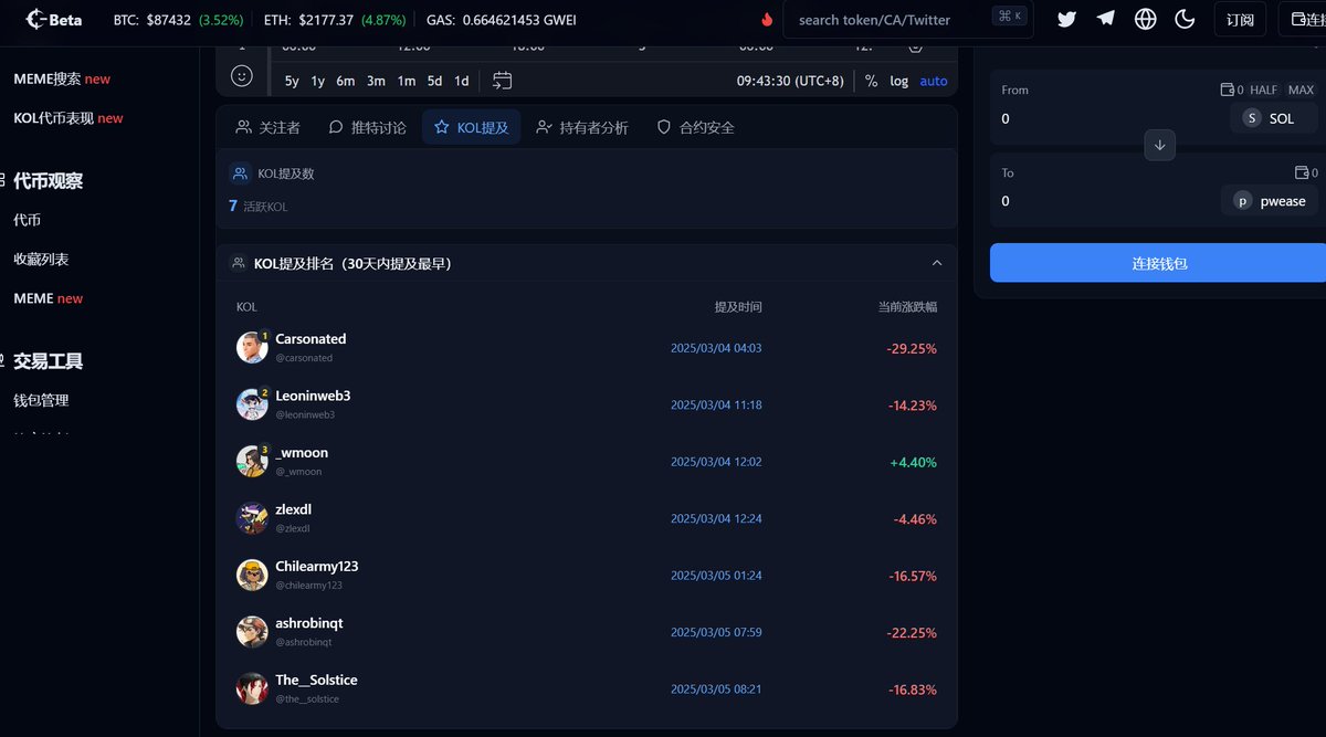- 可看到提及該代幣的 KOL