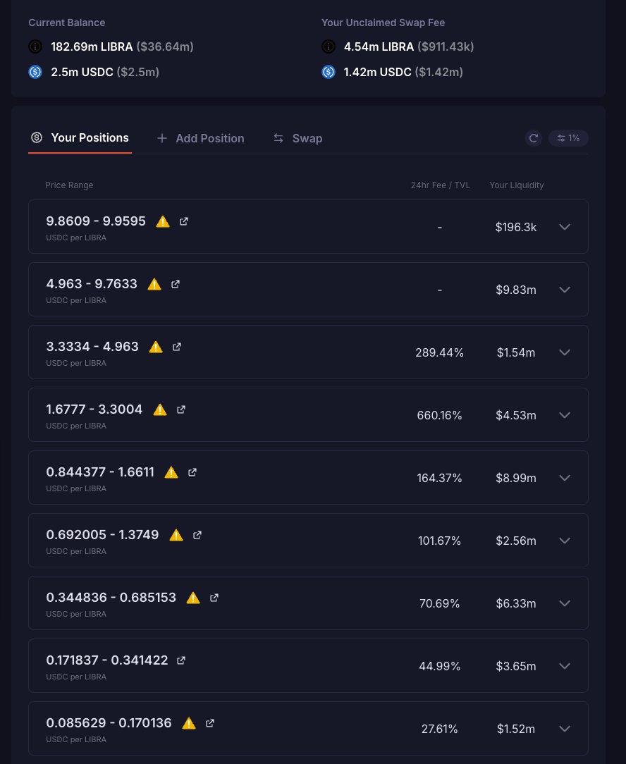 - 下面顯示的 LIBRA-USDC 就是 Dev 創建的流動性池子
